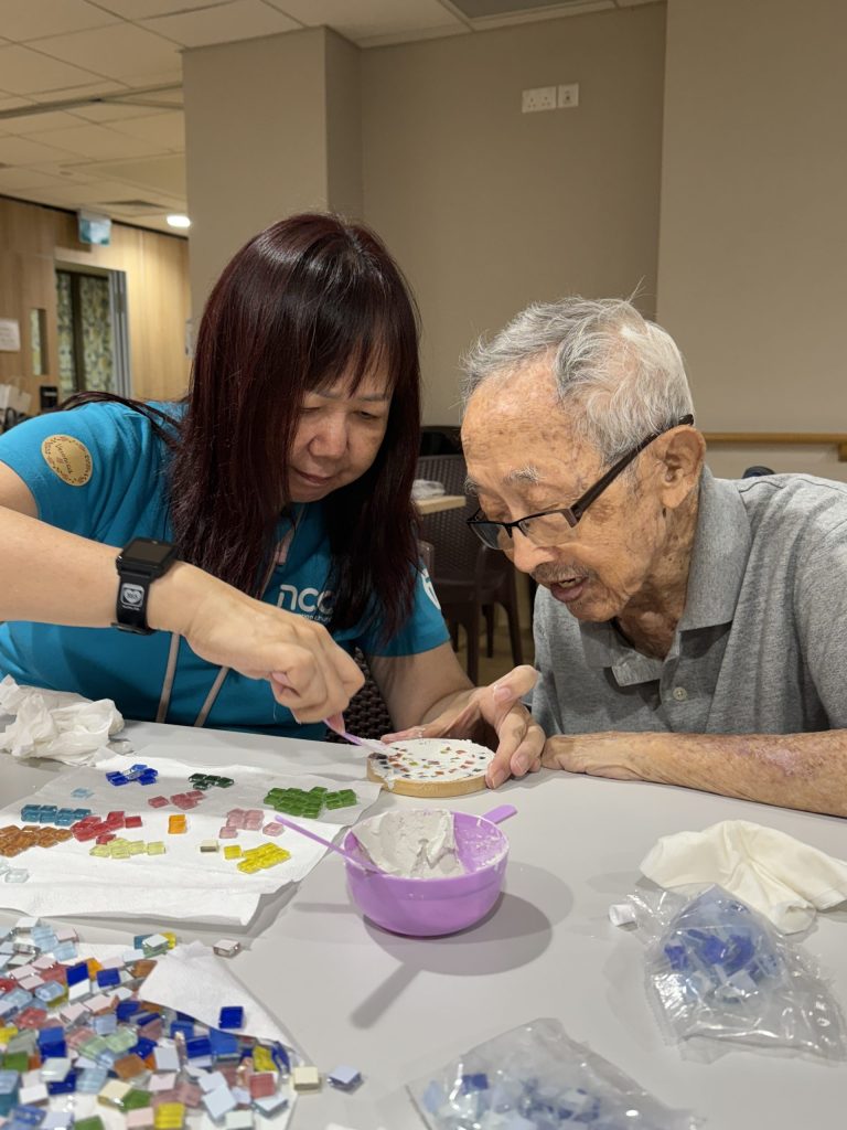 Each guest also received a mosaic coaster lovingly crafted by elders, volunteers, and staff — a meaningful symbol of unity and togetherness. The design was inspired by the mosaic tables commonly found at HDB void decks, which are also replicated at SLEC Residence @ Ang Mo Kio.